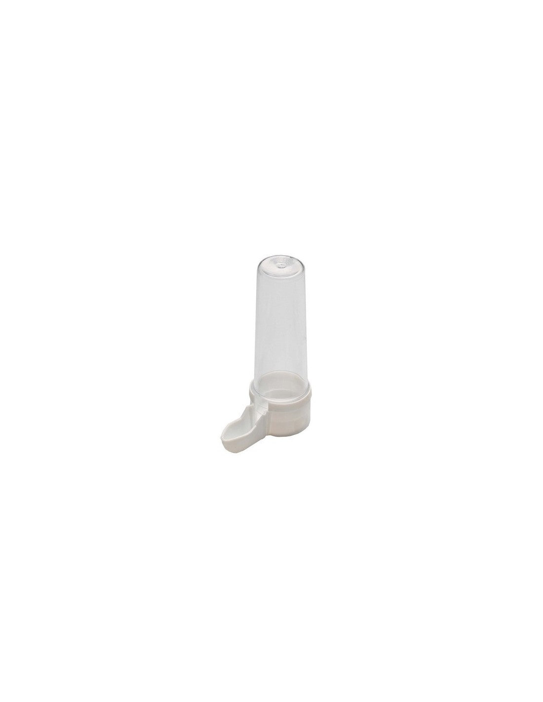 Bebedero pico de pato con tubo transparente y base plana, con mayor apertura.