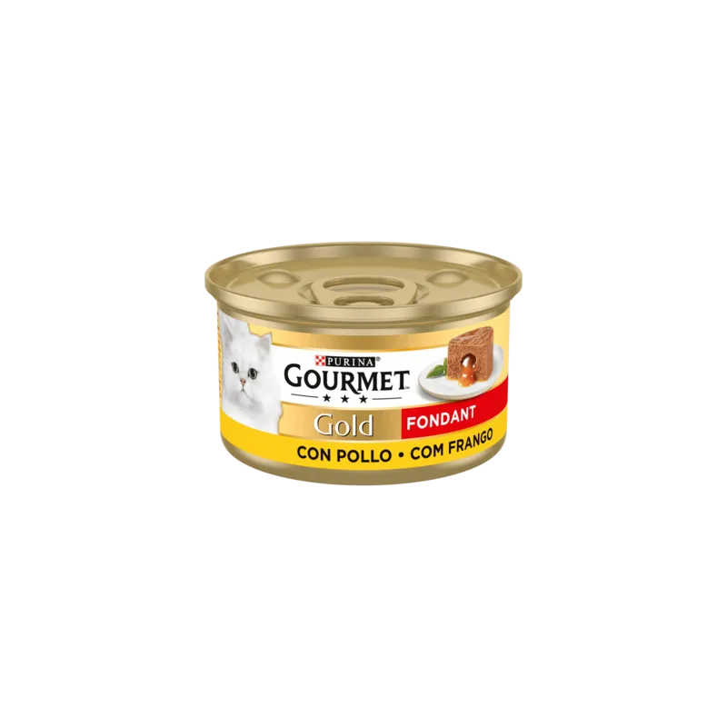 Para hacer su comida incluso más especial, Gourmet ha creado Gourmet Gold Fondant: una delicada e irresistible mousse con pollo, con un sorprendente corazón líquido en su interior. Tu gato primero morderá la suave y delicada mousse para después descubrir un inesperado corazón de suculenta salsa que le encantará. Un delicioso relleno para una exquisita sorpresa.